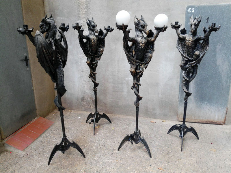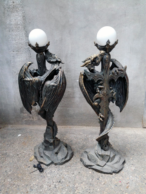 Lampara Pie Dragon Espada Metal Resina Cristal O15