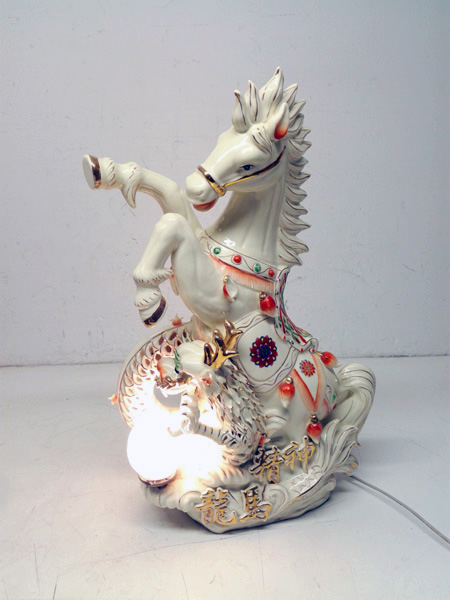 Lampara Sobremesa Dragon Caballo China Asia Ceramica
