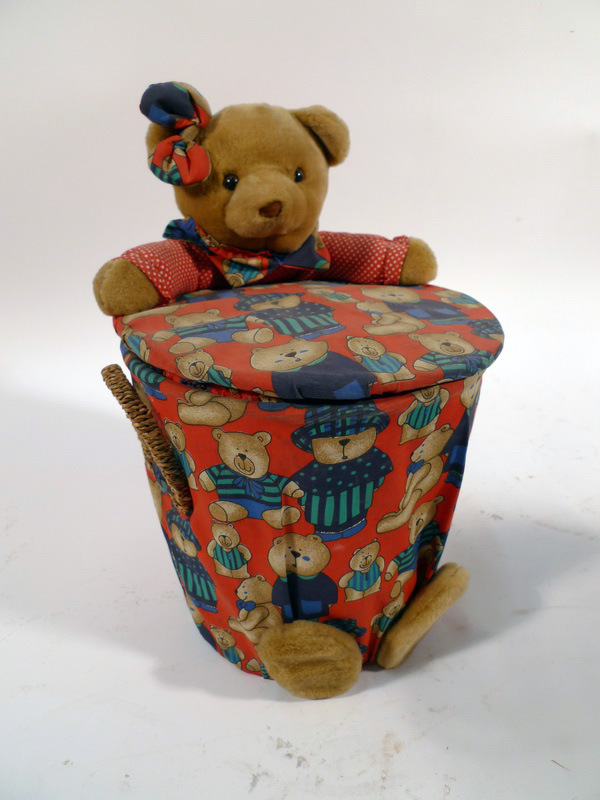 Canasto Almacenaje Oso Peluche Mimbre Tela 48xo32