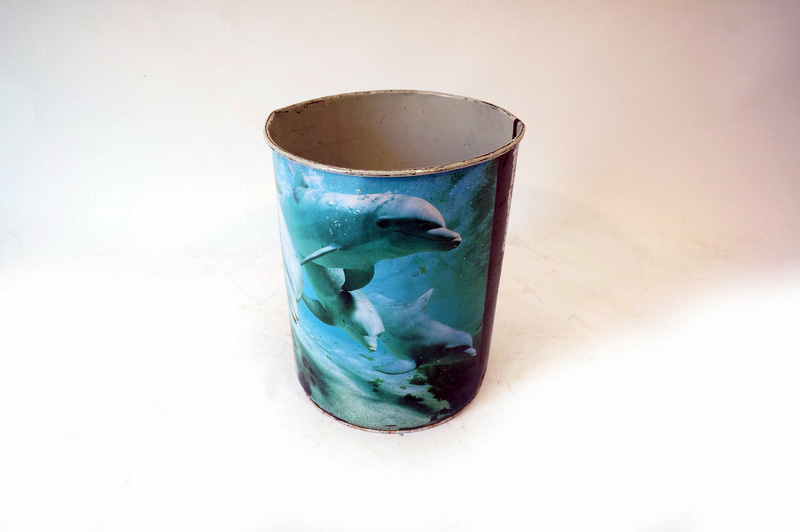 Papelera Metal Estampado Delfines 28xo21