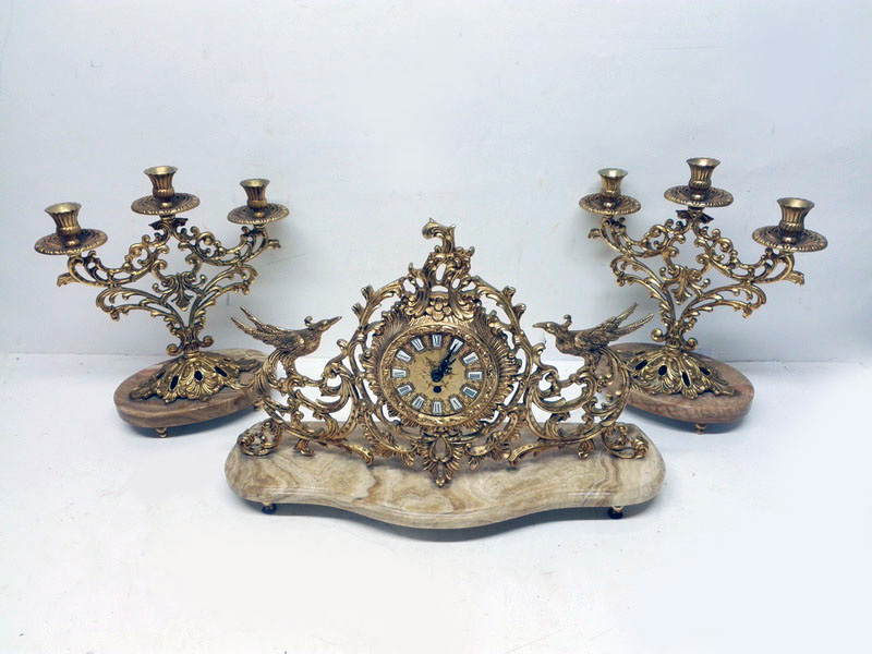 Juego Reloj Candelabros Metal Marmol