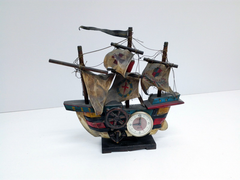 Reloj Sobremesa Barco Carabela Madera