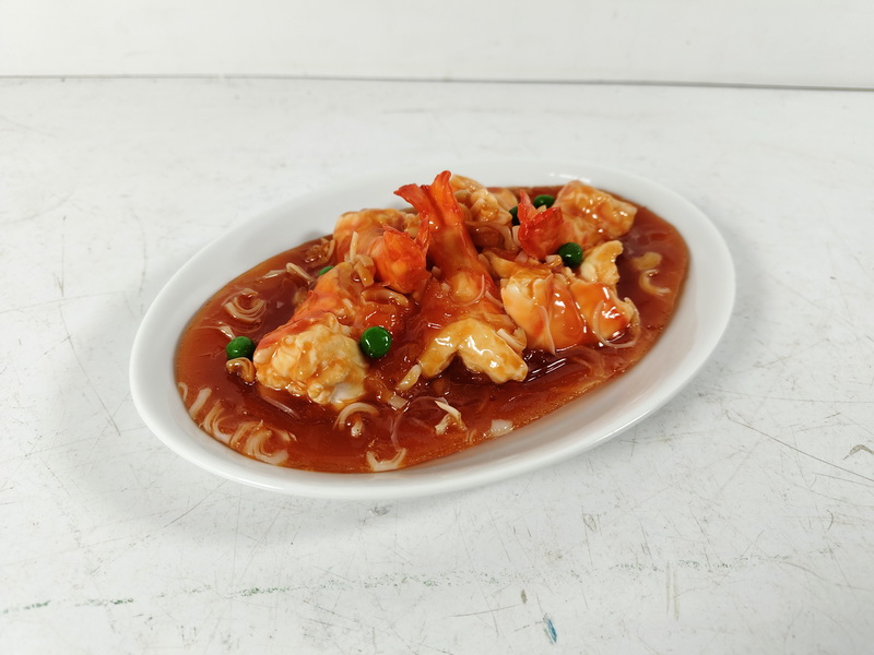 Comida Falsa Plato Langostinos Salsa Ceramica