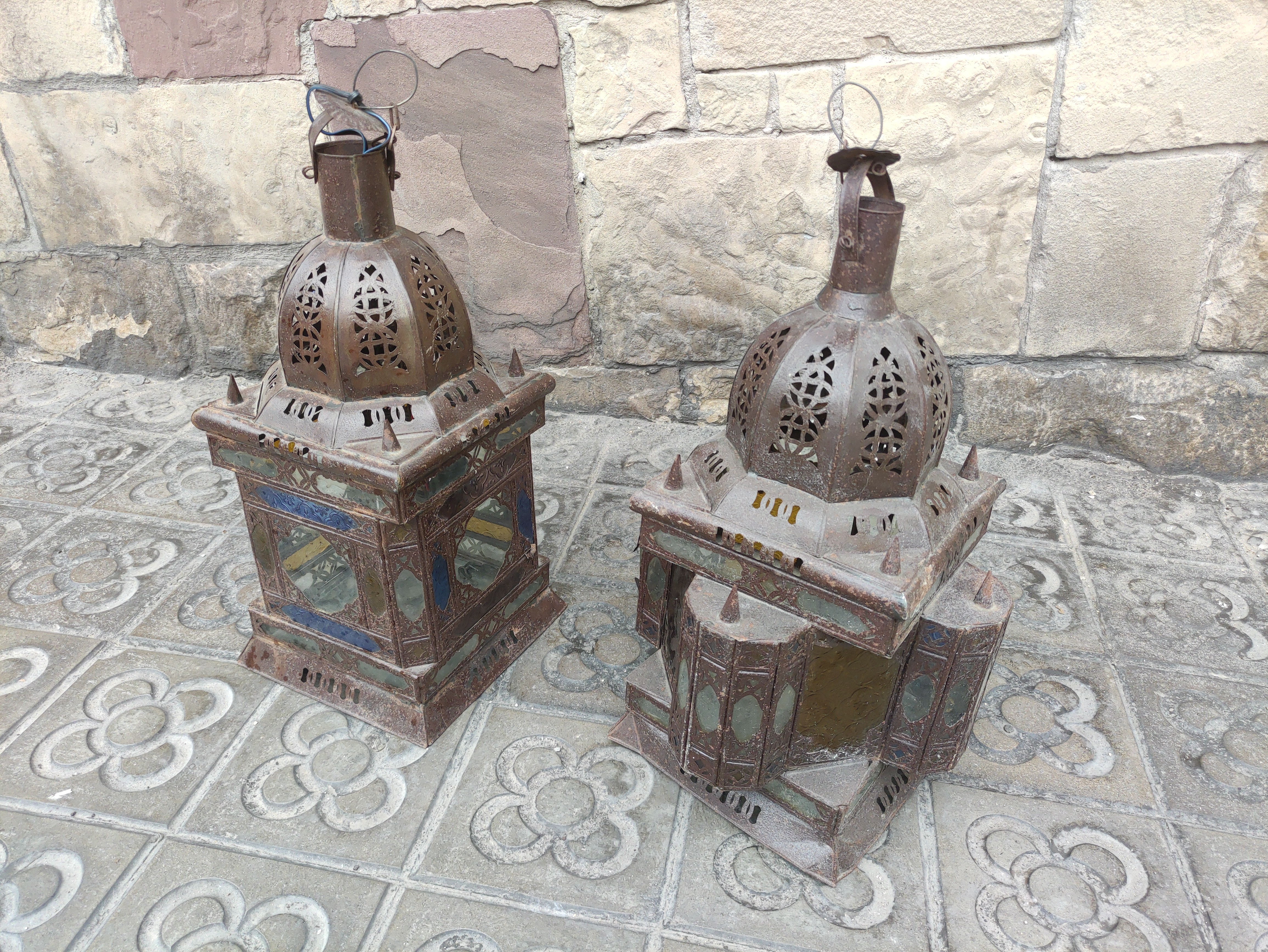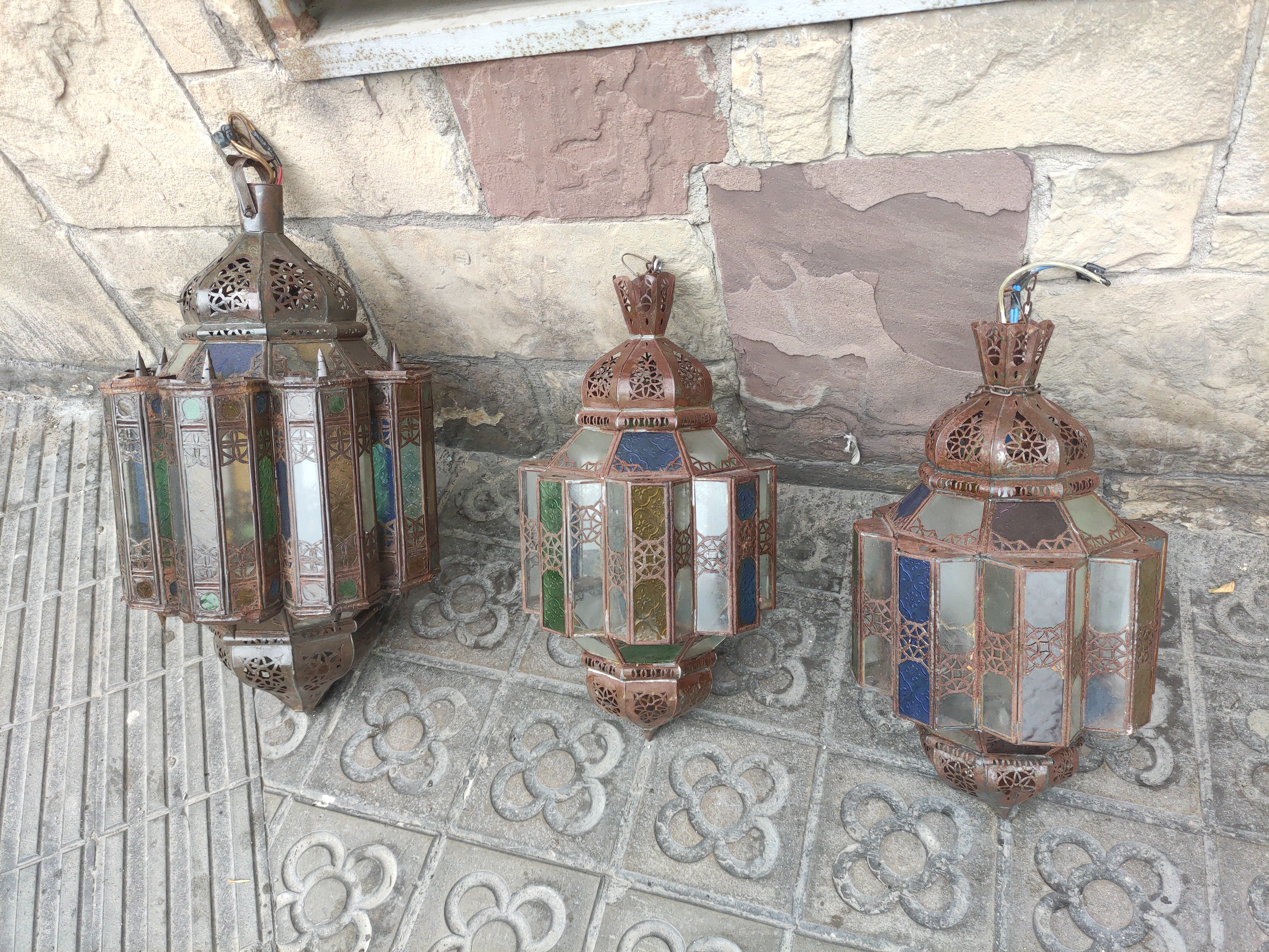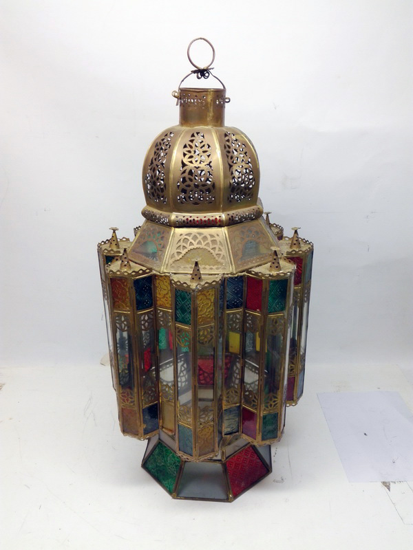 Lampara Metal Cristal Arabe Marruecos Africa Metal Cristal Alt 74 O40