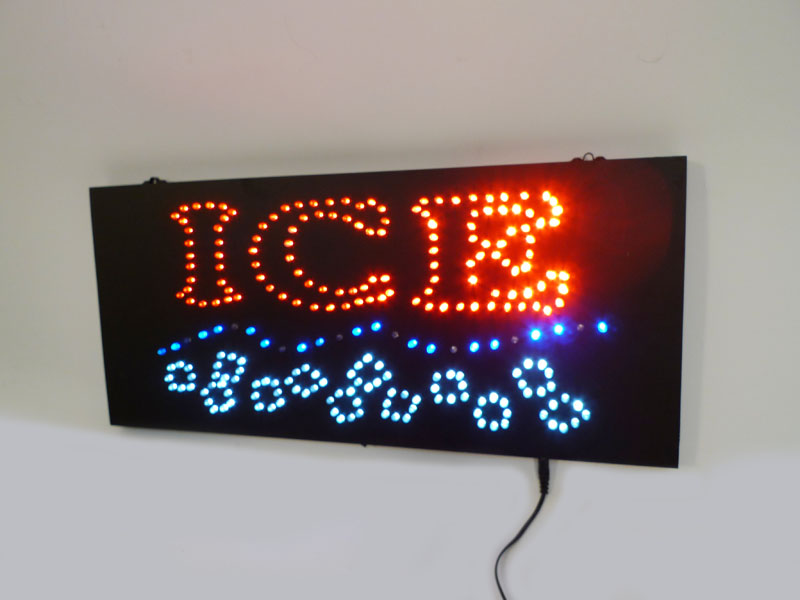 Cartel Leds Ice Transformador Madera Dm Intermitencia Cubitos Linea