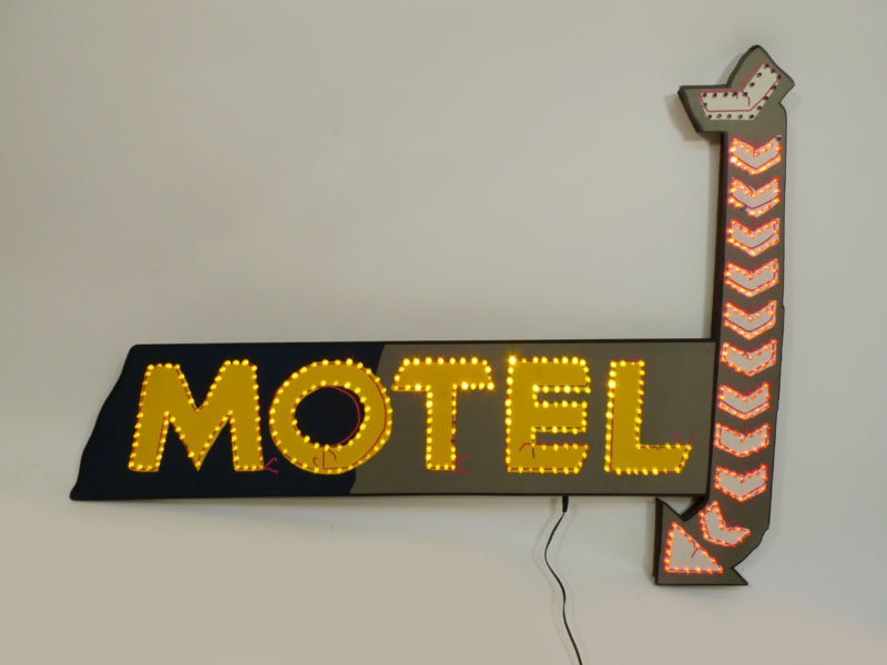 Cartel Leds Motel Transformador Madera Dm Flecha Variaciones Intermit Arriba Abajo