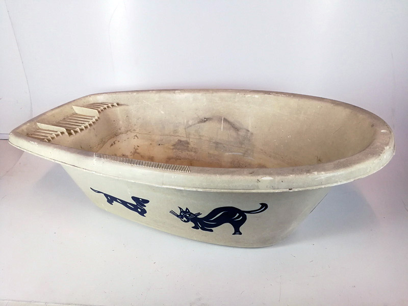 Banera Perro Gato Mascota Plastico Blanco Azul Antigua