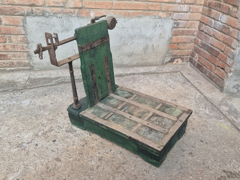 Bascula Balanza Mecanica Antigua Industrial Metal Madera Verde