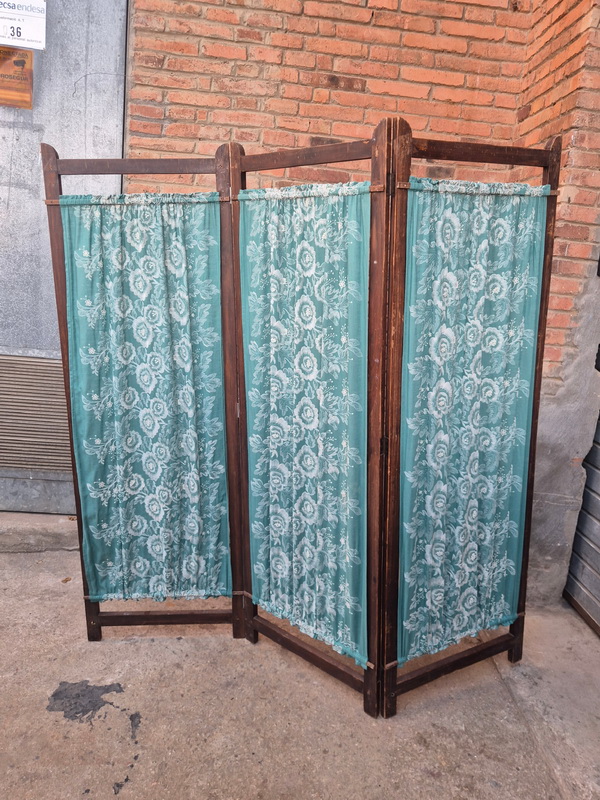 Biombo 3hojas Madera Textil Azul