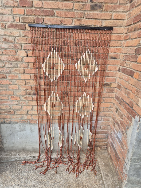 Cortina Cuentas Dibujo Madera Oscura
