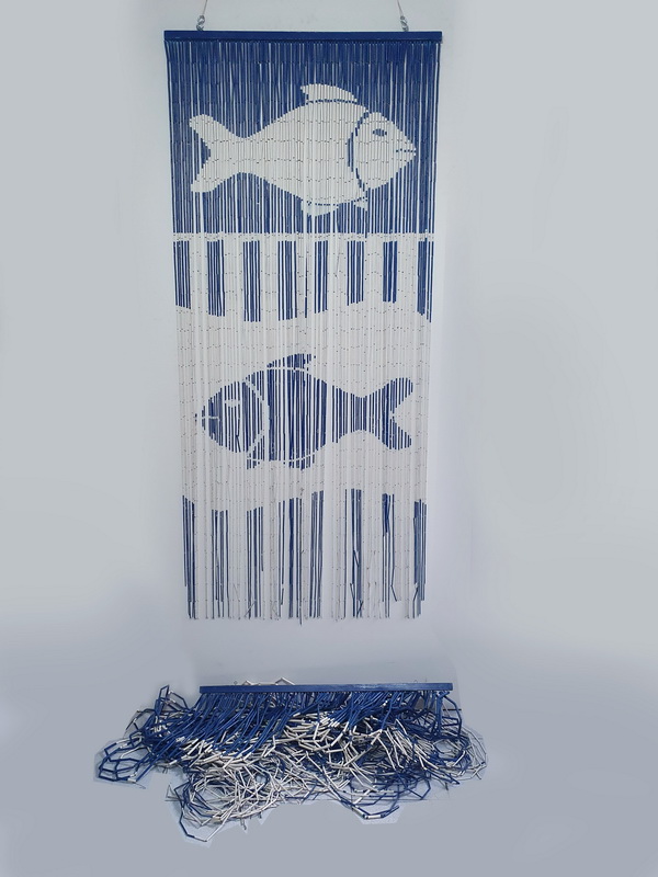 Cortina Cuentas Madera Dibujo Peces