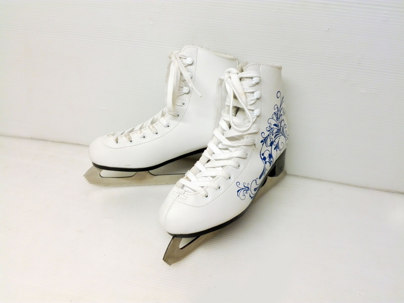 Botas Patinaje Hielo Piel Blanco Flores Metal T39