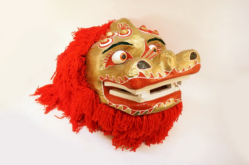 Cabeza Leon Chino Papel Mache Tela