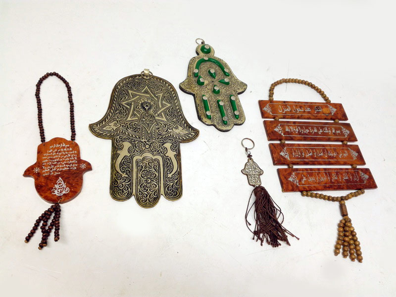 Amuleto Religioso Arabe Marruecos Madera Metal Alto