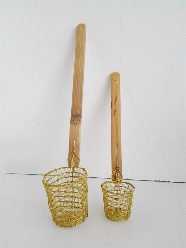 Colador Cocina Asia Alambre Dorado Bambu Largo O31 25 5