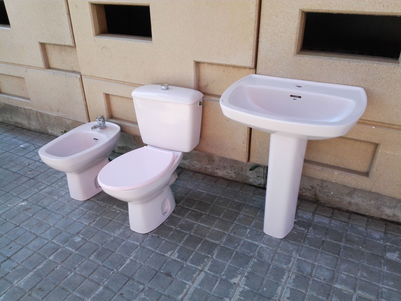 Conjunto Lavamanos Retrete Bide Gala Sanitarios Rosa 40