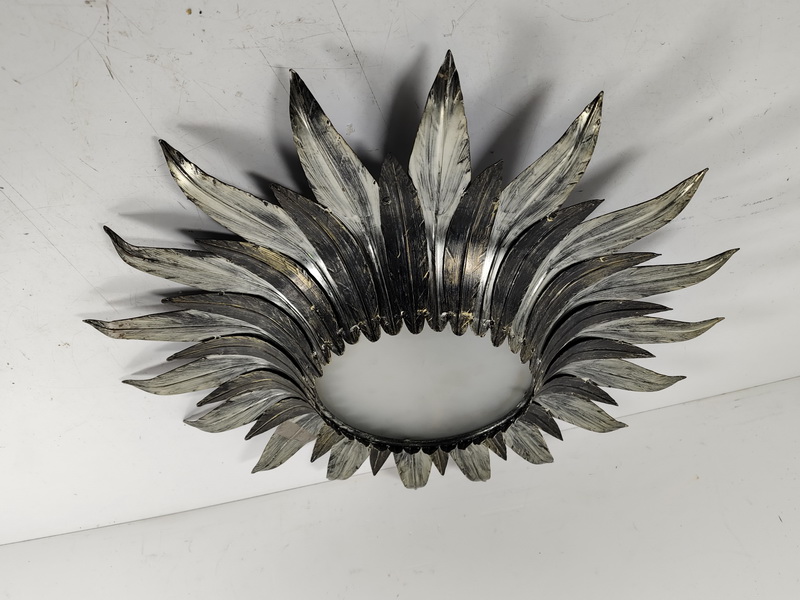 Aplique Flor Sol Pared Techo Metal Plateado Cristal 2xe27 O54 Prof