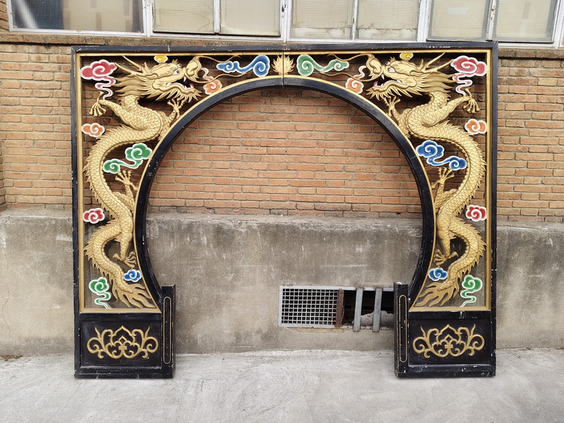 Arco 2lados 2piezas Relieve Dragones Restaurante Templo China Madera